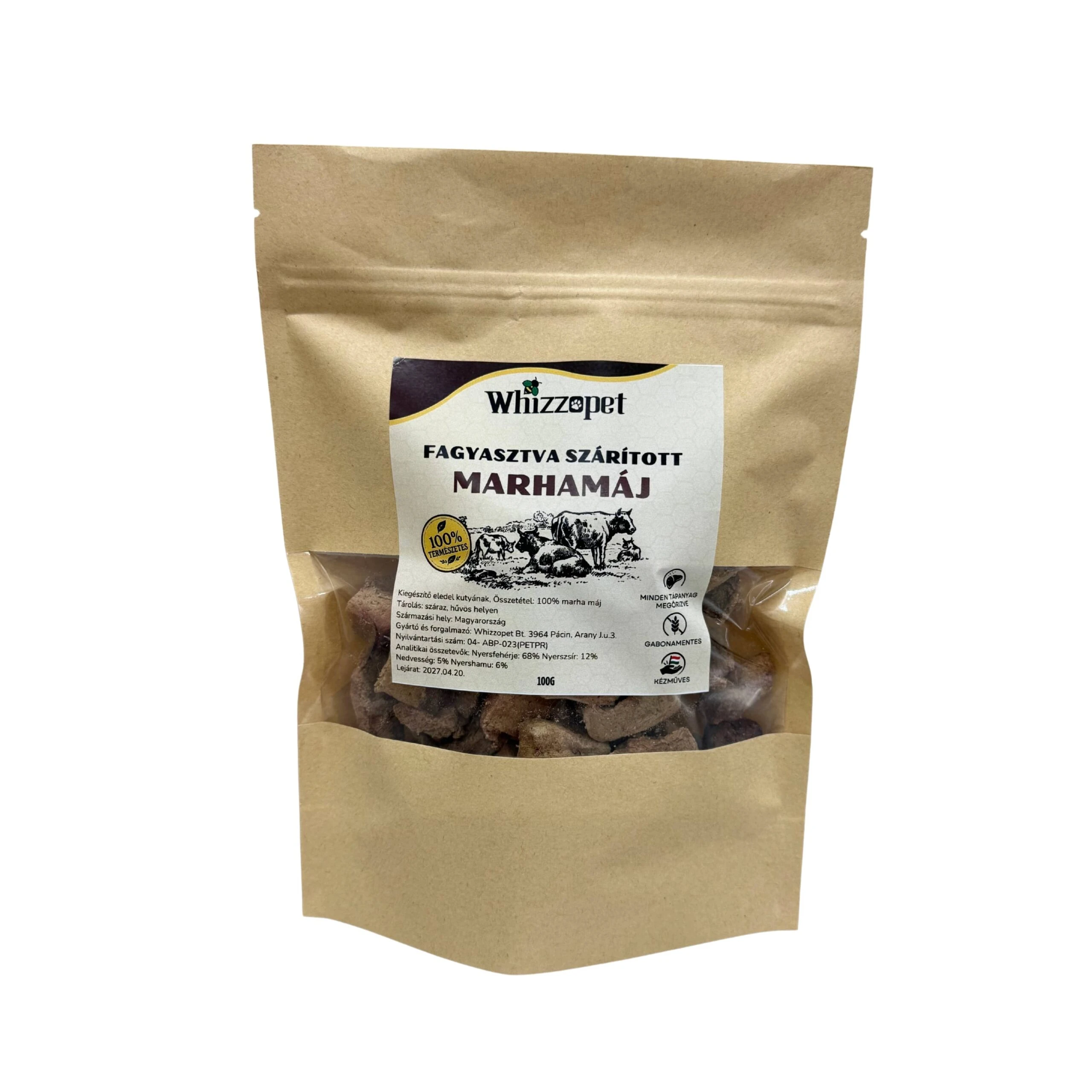 Csak a víz távozik – a tápanyag nem: a liofilizálás során a nyers májból csak a víz távozik (~70–75%), így a 100 g szárított máj kb. 300–350 g friss májnak felel meg.