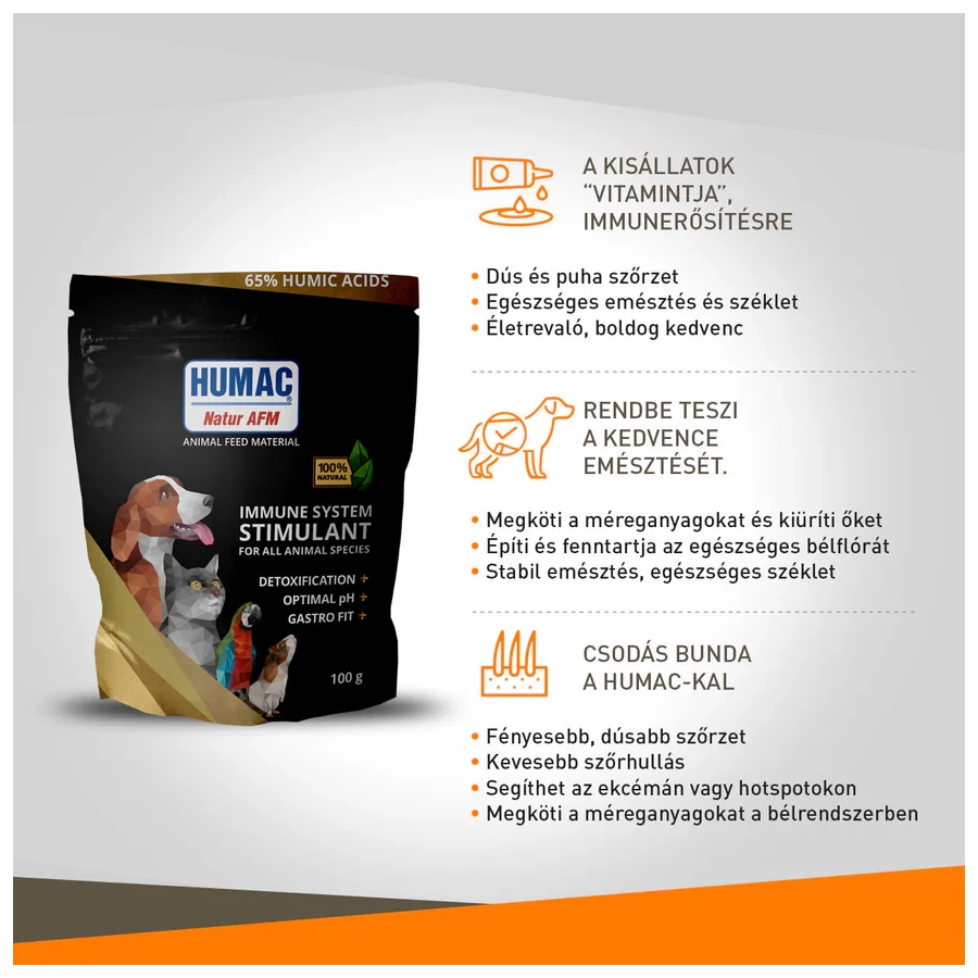 A HUMAC® Natur AFM egy 100%-ban természetes eledel kiegészítő, magas huminsav tartalommal, aktivált Leonarditból. Egy természetes növényi eredetű anyag, magas biológiai hatékonysággal.